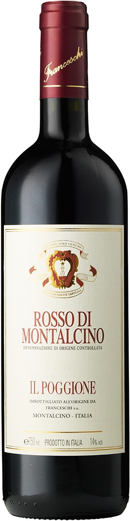 Rosso di Montalcino er lillebror til Brunello og produceres på samme drue iToscana, hvilket er den klonede Sangiovese. Denne drue kaldes Sangiovese Grosso. Lagringstiden er 6 måneder på Barrigues som er små fade og år 6 måneder på store fade. Derefter hviler man vinen i 6 måneder på flaske inden den frigives på markedet. Dette er en vinlov der bestemmer (DOC). Dens karakter er intens, spids og kraftig med en rubinrød farve. Der er en god balance mellem syre og frugt. Il Poggione er en af de meget velrenomeret vinhuse i Montalcino. Vinen er velegnet til rødt kød samt kraftige pasta retter.